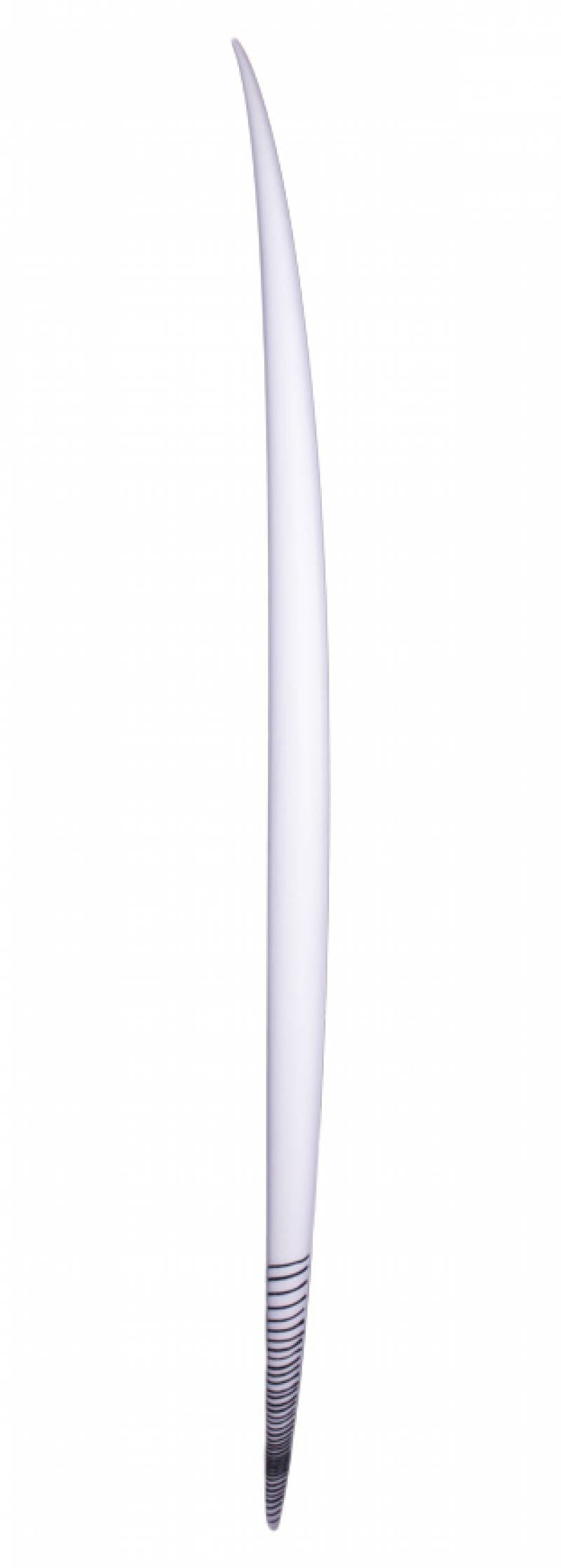 The tail, with its foiled rails and deep vee, holds in and give confidence at high speeds. The overall flat rocker, generous width, and deep central concave generate small wave squirt like you would expect from a Puddle jumper.